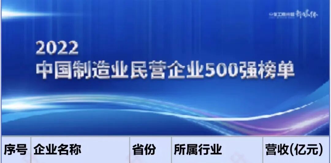 2022中国制造业民营企业500强榜单截图