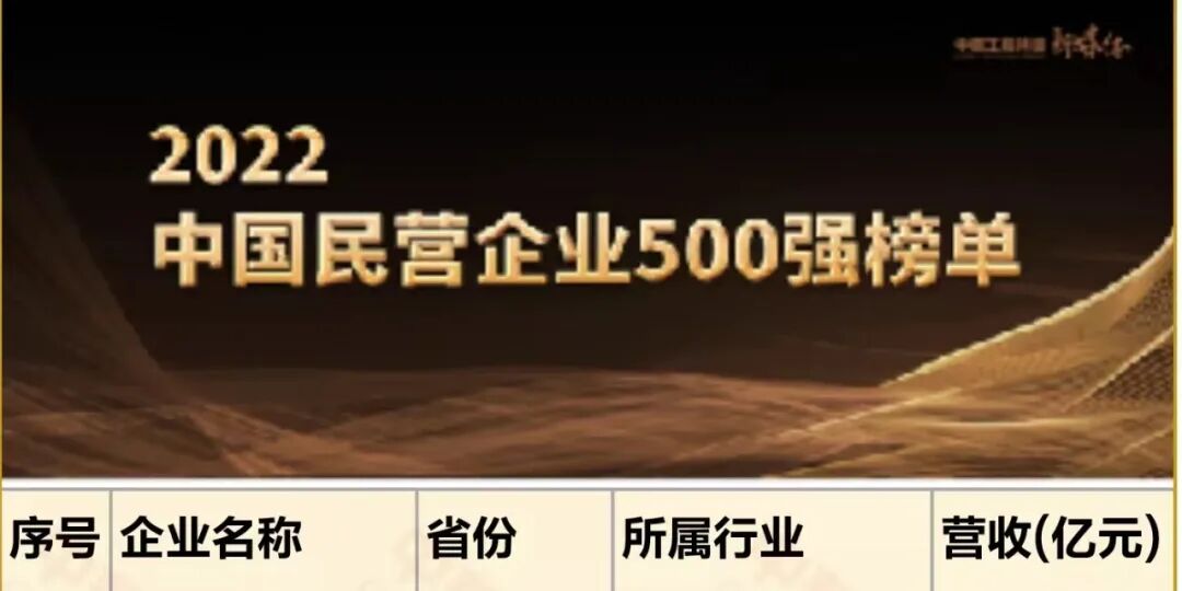 2022中国民营企业500强榜单截图