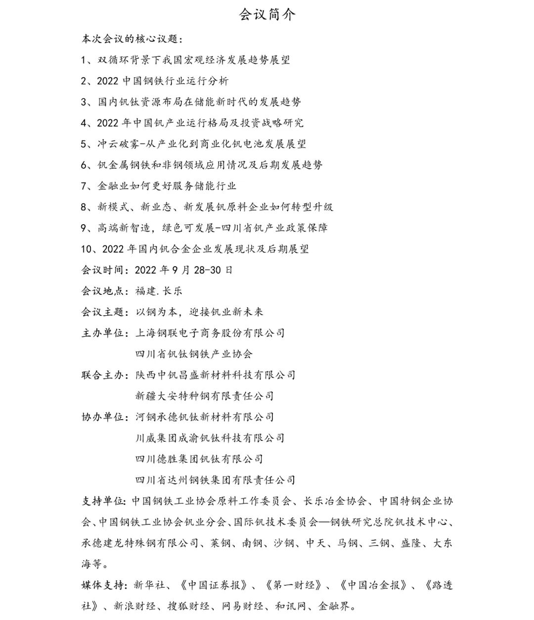 2022年中国钒业峰会暨钒电池产业发展论坛暨2022年度钒合金优质供应商颁奖典礼即将召开