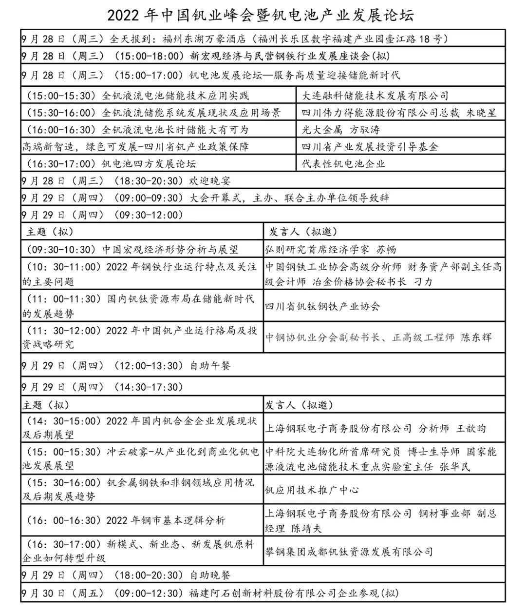 2022年中国钒业峰会暨钒电池产业发展论坛即将召开