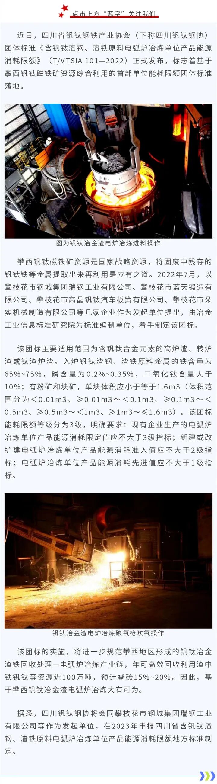 坚持资源节约和指标引领 四川钒钛钢协含钒钛渣钢、渣铁原料电炉冶炼能耗限额团标发布