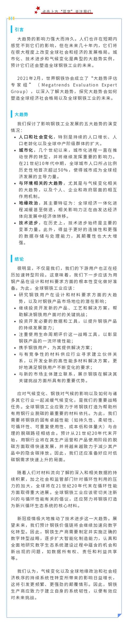 大趋势及其对全球钢铁工业的影响