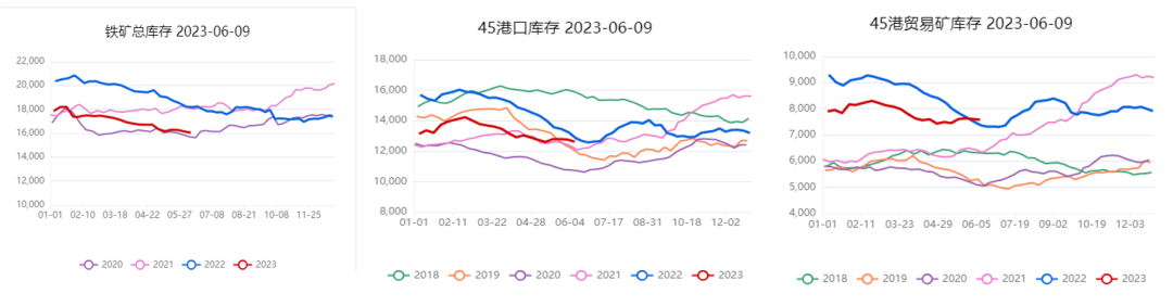 钢厂进口矿库存8470.85(-72.32)万吨;钢厂港口库存5042.78(-102.34)万吨;钢厂厂内库存+海漂库存3428.07(+30.02)万吨;247钢厂进口矿库消比28.93(-0.39)天。