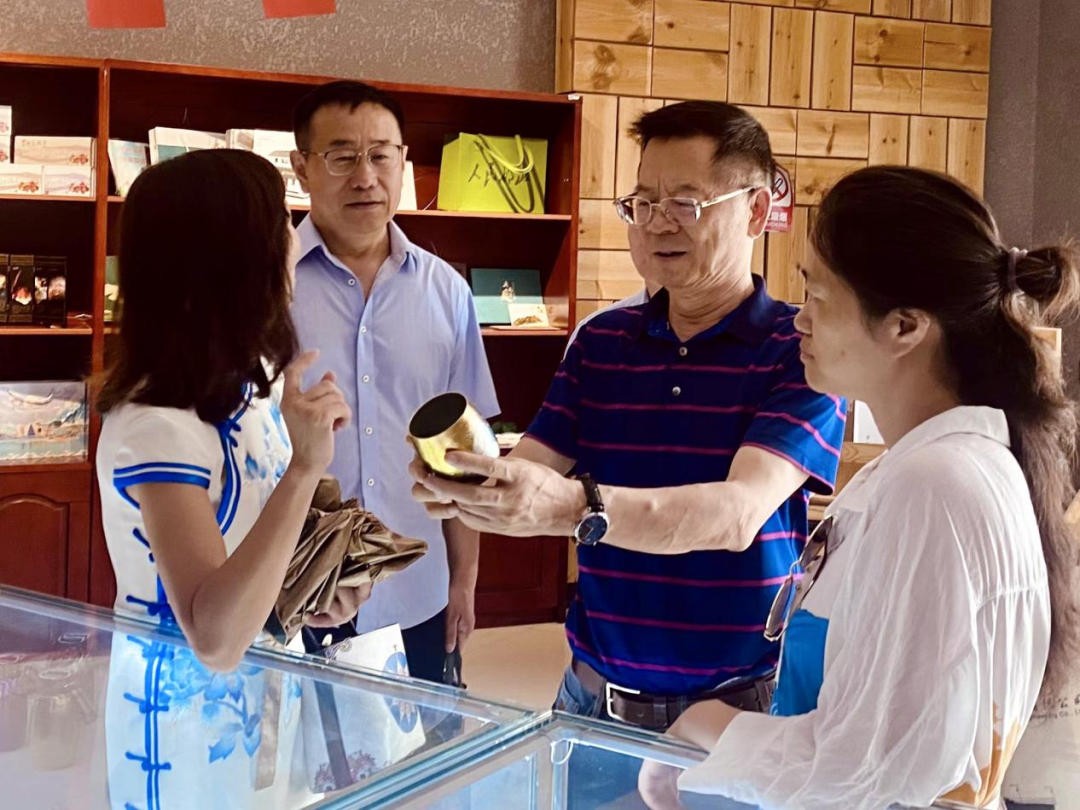 张邦绪一行在公司董事长杨环的陪同下,参观了公司设在攀枝花中国三线建设博物馆外的彩钛产品展览展示与销售中心,详细了解公司创建的“攀枝花故事”“泰坦天尊”“钛杨女神”等品牌的内涵,近距离感受彩钛产品的魅力,听取美丽彩钛背后的励志创业故事。张邦绪等对彩钛无需任何油漆和颜料,通过温度和电流控制,就能变得色彩斑斓表示赞叹,对公司的彩钛产品得到市场认可,远销日韩和欧美表示敬佩。