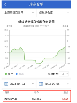 我们这里主要关注金融与产业连接点上的期货交易所成材螺纹与卷板仓单库存: