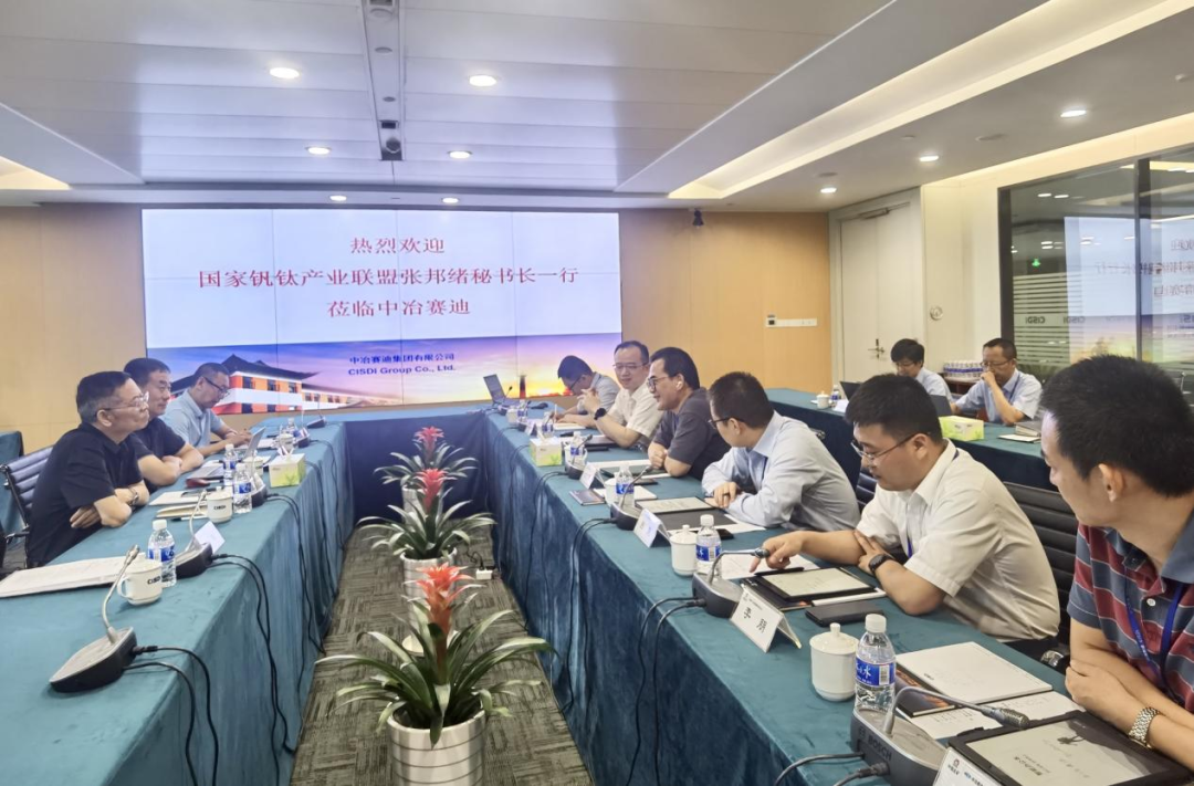 王勇总监对张邦绪一行的到来表示欢迎,希望国家钒钛产业联盟对中冶赛迪的工作多加指导,并希望双方加强合作,共同推广氢基竖炉冶炼钒钛磁铁矿工艺技术,为我国深化钒钛资源利用作出贡献。