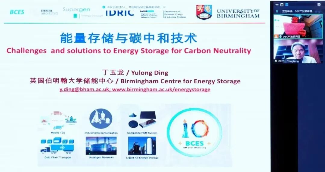 英国皇家工程院院士丁玉龙在做《能量存储与碳中和技术》主题报告时从2050年—2060年碳中和能源转型的主要挑战、目前技术发展是否满足碳中和需求、热能存储在应对碳中和未来挑战中的机遇等三方面问题进行了深入分析。