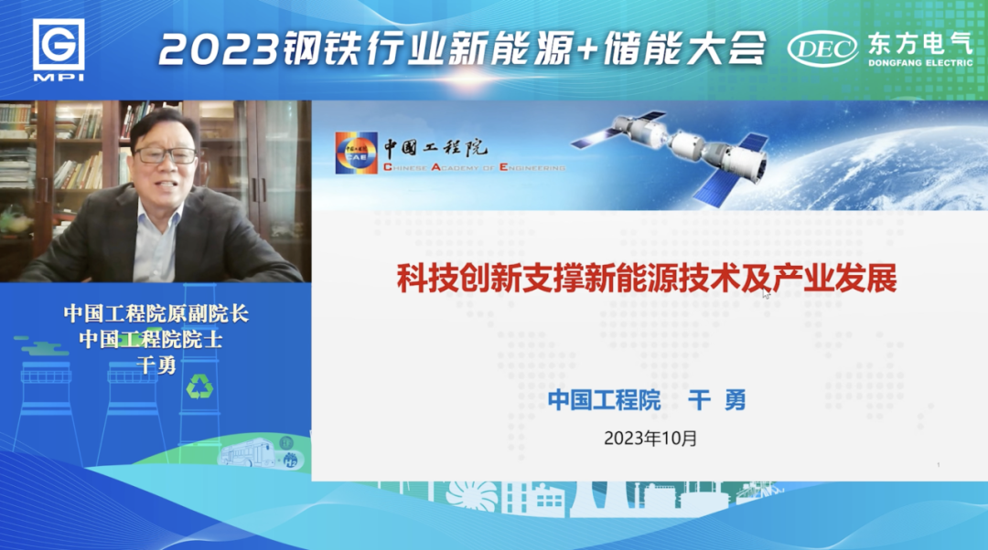 东方电气集团战略咨询委员会委员曹剑绵做《大力发展新能源储能产业,服务新时代国家能源战略,助力钢铁行业低碳发展》主题报告。