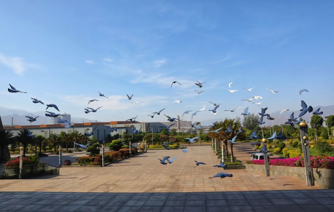 绿化建设因地制宜、格构边坡特色鲜明。如今的西昌钢钒,郁郁葱葱的行道树笔直的挺立在道路两侧,热情似火的刺桐、烂漫的蓝花楹、艳丽的夹竹桃和异木棉花在不同季节里争相开放,充分展示出“碧浪荫蔽中,秀色扑面来”的景观效果;飞翔的白鸽、畅游的小鱼,丰富多彩的景观与厂房、道路、办公楼有机结合,形成了一个整体和谐、形象优美、舒适安静的现代化工厂……