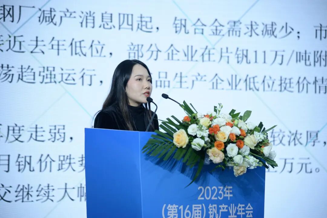 铁合金在线钒产品分析师付鑫仪带来《2023年1-11月钒系数据盘点》报告,从回顾2023年1-11月钒产品价格,到分析2023年1-10月钒产品产量,汇总2023年1-10月钒产品进出口,分析2023年1-10月钢厂钒合金的需求。最后,分析了2023年钢市,并展望与预测2024年。她分析到,钢铁业转型升级和高质量发展仍在有条不紊推进,高强度螺纹钢对钒需求量有望提升;国家不断释放利好房地产政策,以保证房地产市场平稳健康发展;加上桥梁、道路等土建工程建设等消费力仍在,螺纹钢需求或能期待有所恢复;专家预测,2024年钒电池需求或将明显增加。