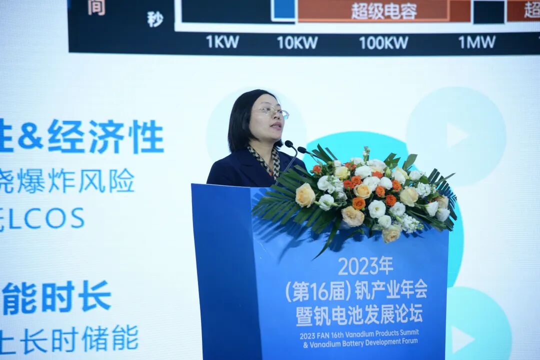 大连融科储能技术发展有限公司王晓丽带来《长时储能—钒液流电池储能产业现状与发展机遇》报告,主要从长时储能的重大需求、钒液流电池技术与产业现状、市场应用等三个方向去阐述。