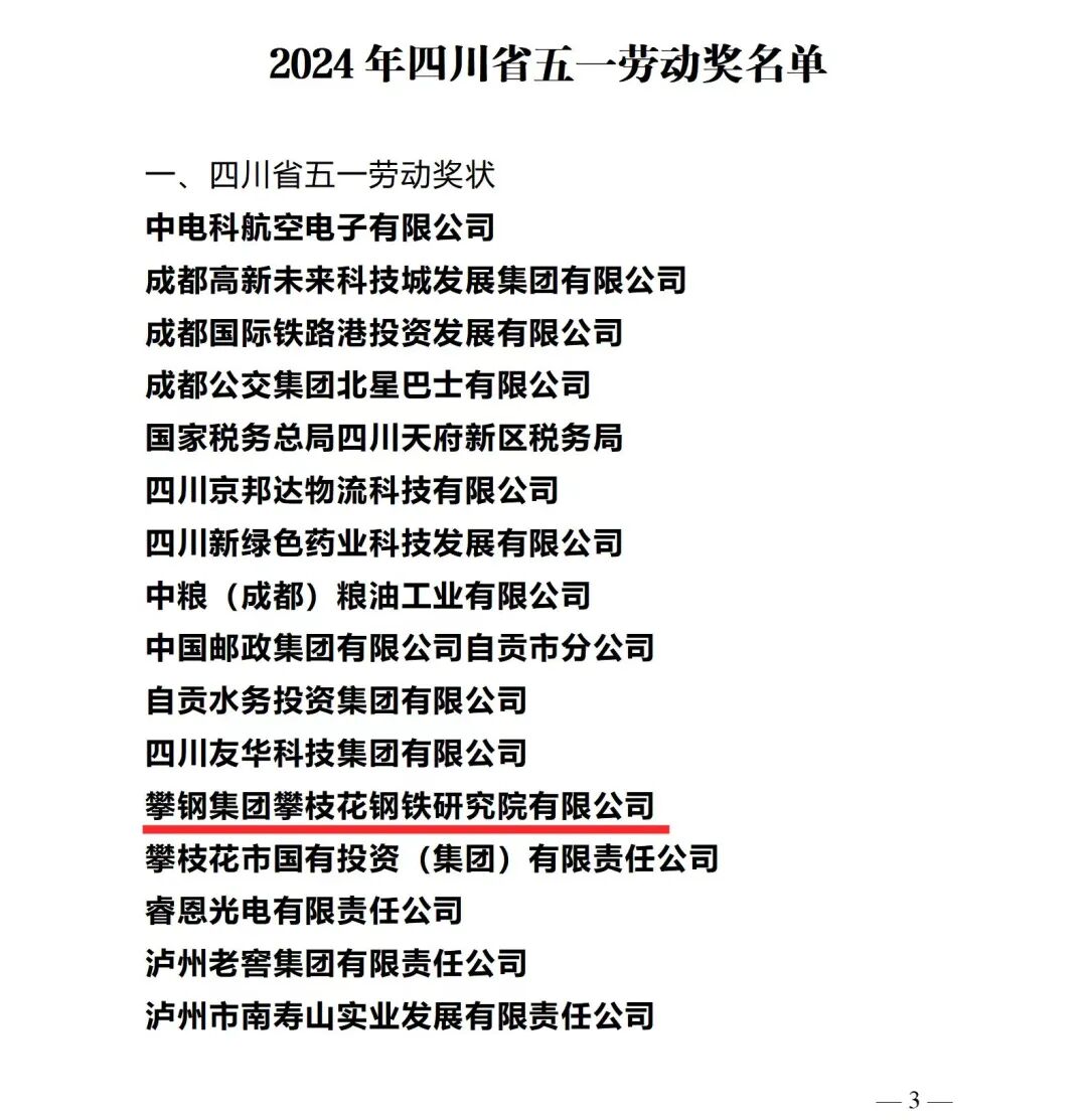 4月28日上午,2024年四川省庆祝“五一”国际劳动节大会在成都举行。为表彰先进,树立榜样,进一步激励全省广大职工的积极性和创造性,四川省总工会决定,授予中电科航空电子有限公司等89个单位“四川省五一劳动奖状”称号,授予苏立民等195名职工“四川省五一劳动奖章”称号,命名成都飞机工业(集团)有限责任公司材料应用技术室等99个集体“四川省工人先锋号”称号。我会副会长单位重钢西昌矿业有限公司、理事单位攀钢集团攀枝花钢钒研究院有限公司荣获四川省五一劳动奖状、会长单位攀钢集团李倩、蒋家国、孙栋荣获四川省五一劳动奖章。