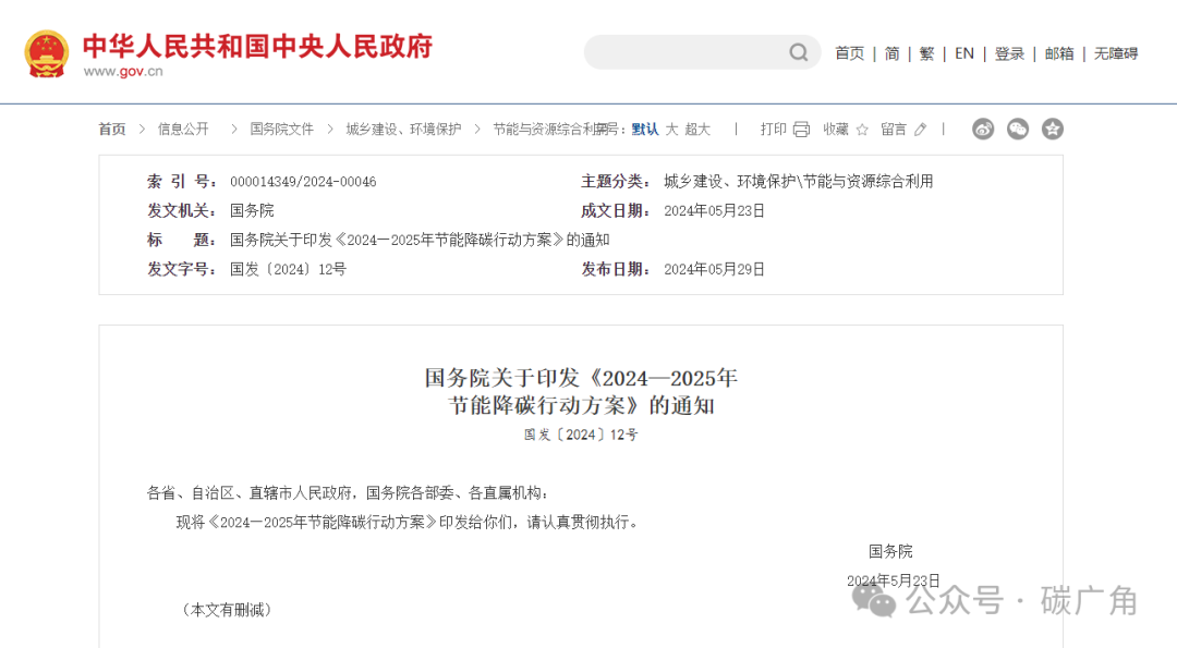 国务院关于印发《2024—2025年节能降碳行动方案》的通知