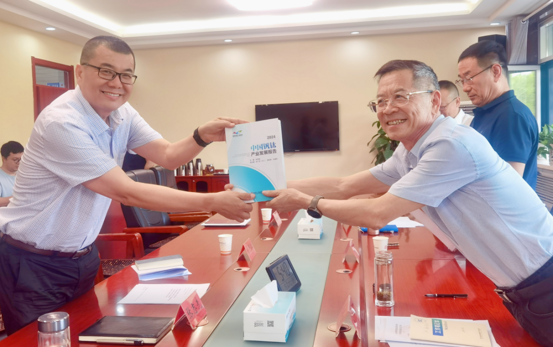 会议结束后,张邦绪向张志先、翟同江等哈密市领导赠送了《中国钒钛产业发展报告(2024)》。