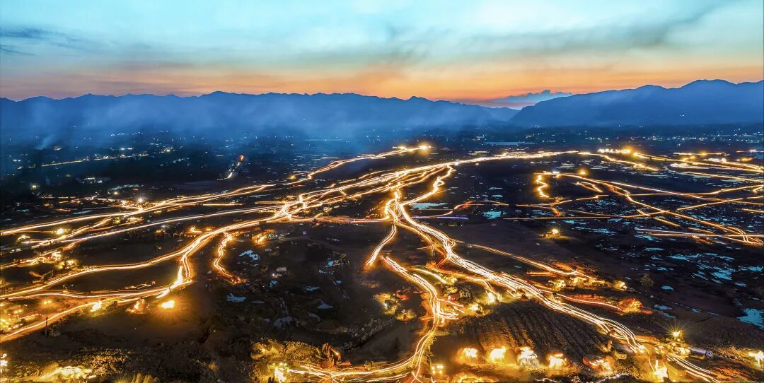 场平主体工程最大开挖高度130米,最大填方高度15米,土石方总挖填量超过3500万立方米;同步完成拆除2414户房屋、迁移3722座坟墓的征拆任务,创下了全省近70年来类似项目建设最快速度。