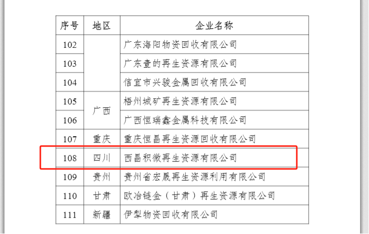 近日,工信部发布公告,公布了符合《废钢铁加工行业准入条件》企业名单(第十二批),其中四川仅1家企业进入名单——西昌积微再生资源有限公司,该企业是成都积微物联集团股份有限公司旗下公司,主要围绕深耕再生资源的回收、加工、运输、仓储、交易及技术服务等产业链各环节,倾力打造一体化服务的循环产业生态圈,助力再生资源行业的绿色可持续发展。